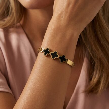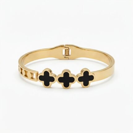 PYARI 18K Gold Plated Three Leaf Clover Openable Bracelet
