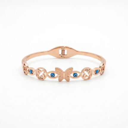 PYARI Rose Gold Plated Anti Tarnish Evil Eye and Butterfly Charm Bracelet