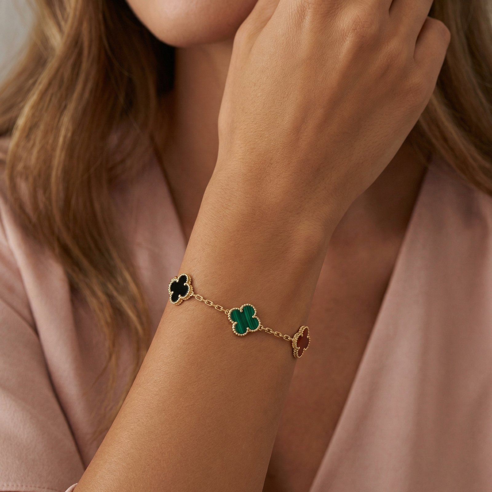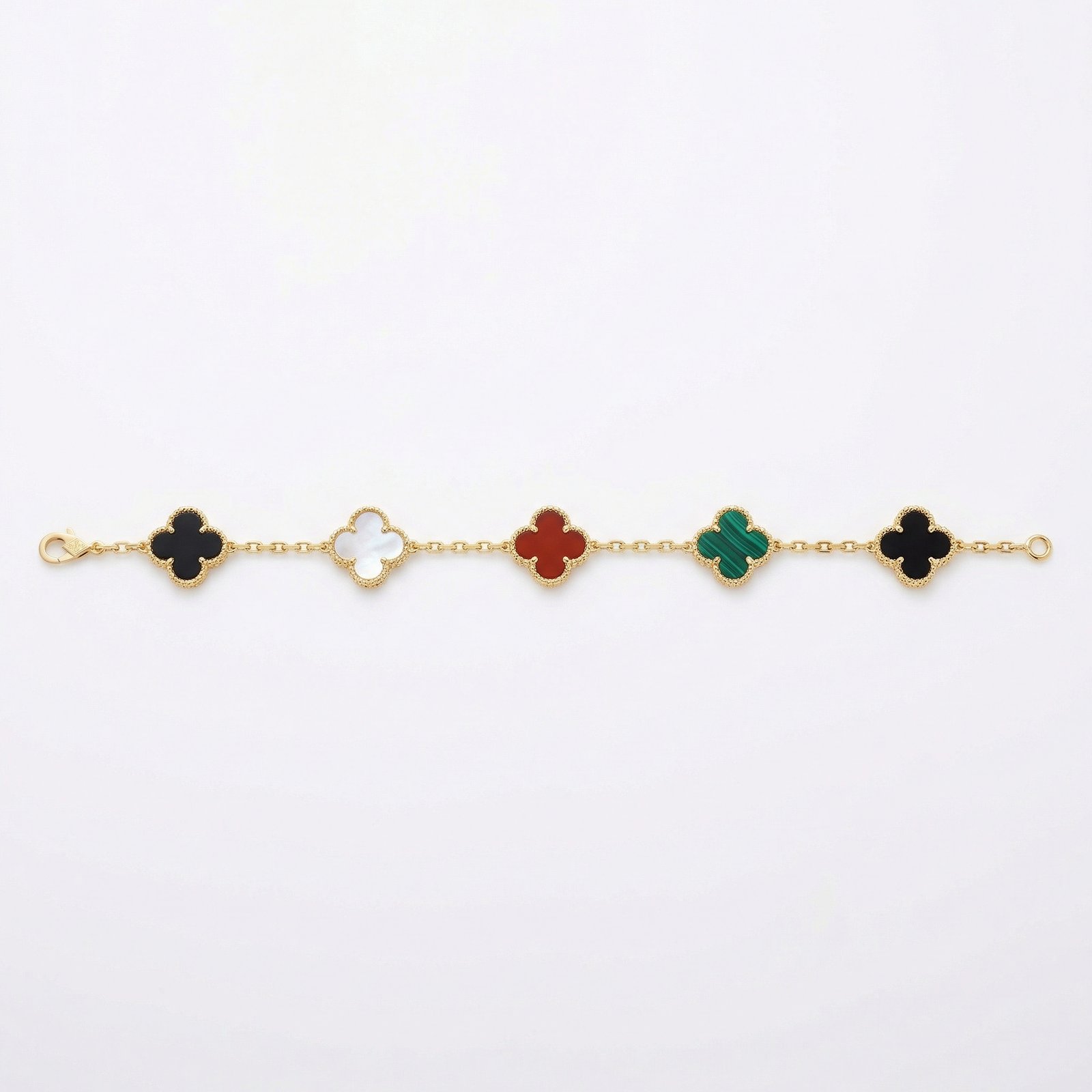PYARI 18K Gold Plated Anti-Tarnish Multi-Color Clover Charm Bracelet